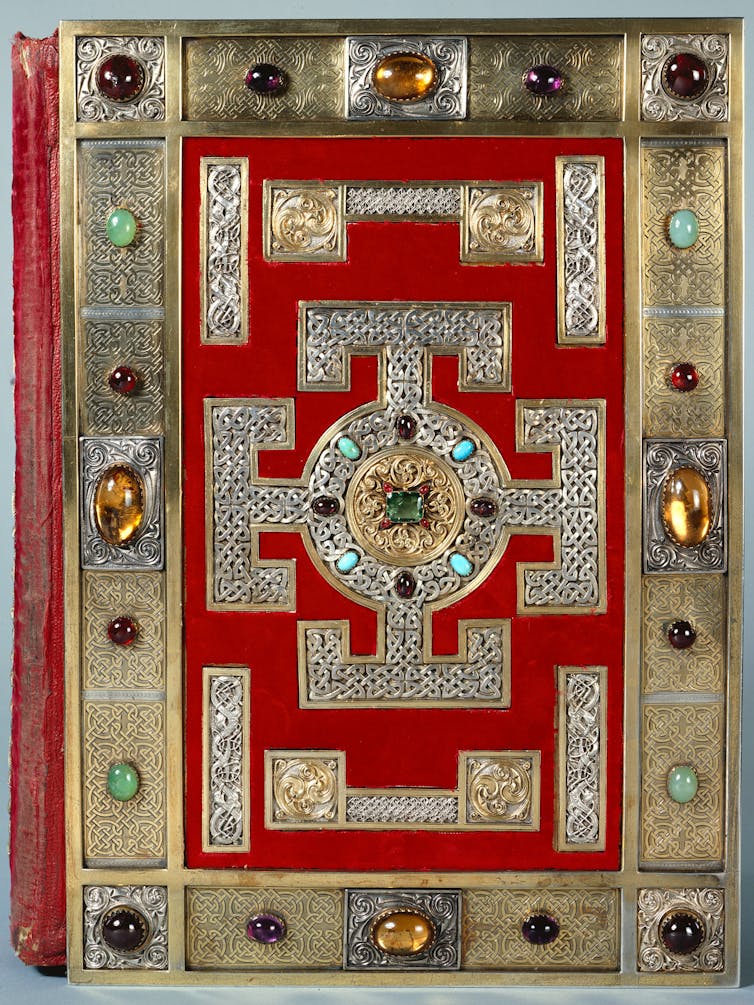 The Lindisfarne Gospels with its modern binding, commissioned in 1852 by Edward Maltby, Bishop of Durham. British Library
